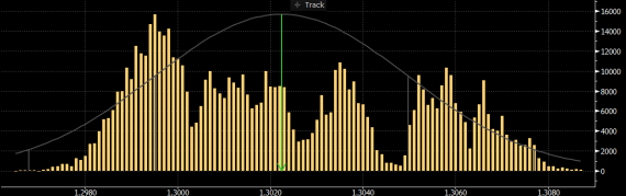 Celkový počet obchodů na jednotlivých cenách během minulé obchodní seance. Úrovně, na kterých se minulou obchodní seanci daný měnový pár nejčastěji zdržoval, mohou působit jako účinný magnet také dnes.