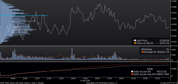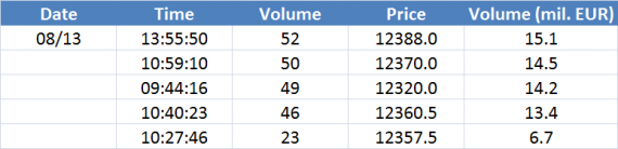 Největší obchody podle objemu na DAX (aktivní future kontrakt)