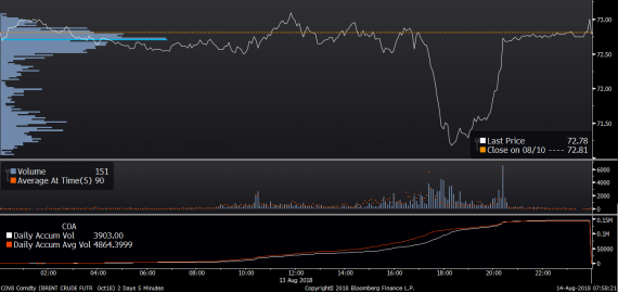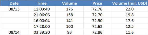 Největší obchody podle objemu na Brent (aktivní future kontrakt)