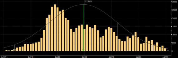 - nejvíce obchodů zrealizováno na ceně 1.2749