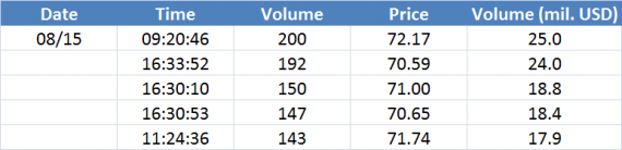 Největší obchody podle objemu na Brent (aktivní future kontrakt)