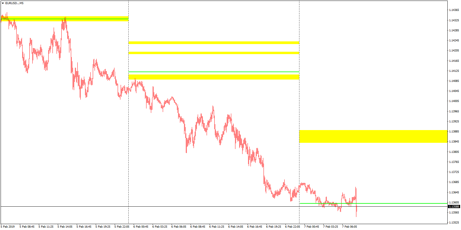 Celkový počet obchodů na jednotlivých cenách během minulé obchodní seance. Úrovně, na kterých se minulou obchodní seanci daný měnový pár nejčastěji zdržoval, mohou působit jako účinný magnet také dnes.