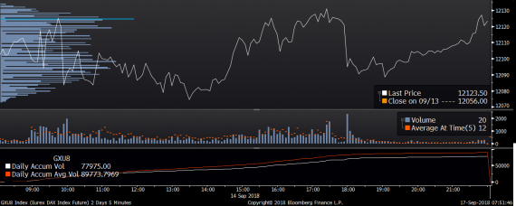 Největší obchody podle objemu na DAX (aktivní future kontrakt)