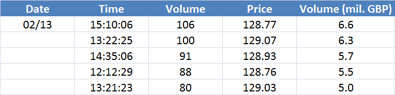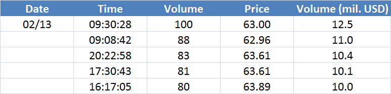 Největší obchody podle objemu na Brent (aktivní future kontrakt)