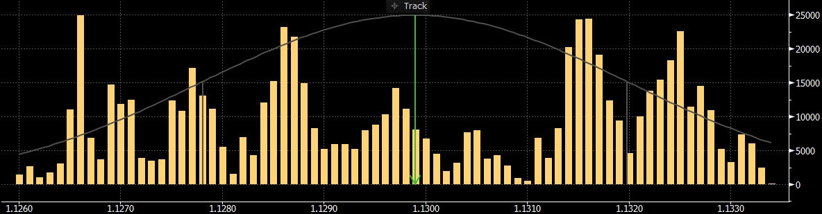 Graf důležitých úrovní, největšího obchodu a opčních expirací na EURUSD