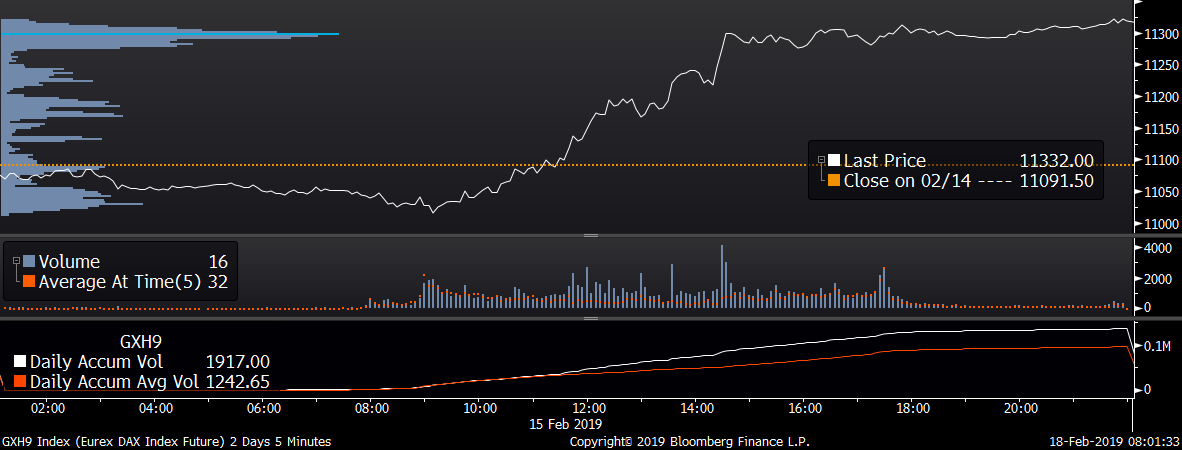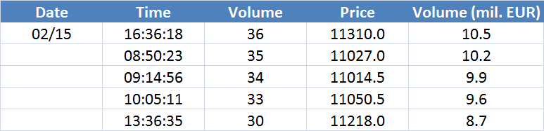 Největší obchody podle objemu na DAX (aktivní future kontrakt)
