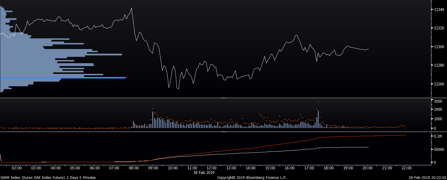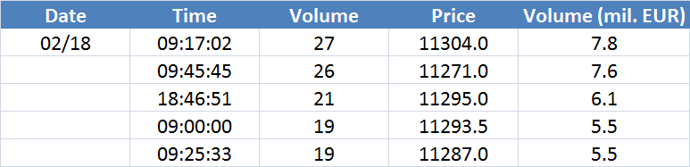 Největší obchody podle objemu na DAX (aktivní future kontrakt)