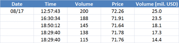 Největší obchody podle objemu na Brent (aktivní future kontrakt)