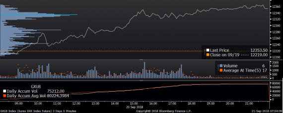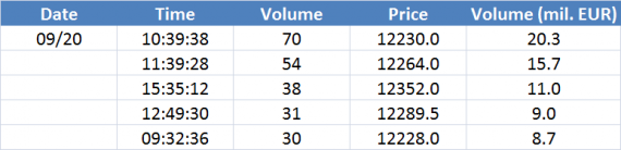 Největší obchody podle objemu na DAX (aktivní future kontrakt)