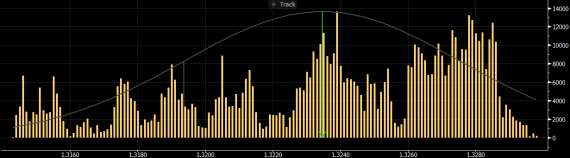 - nejvíce obchodů zrealizováno na ceně 1.3239