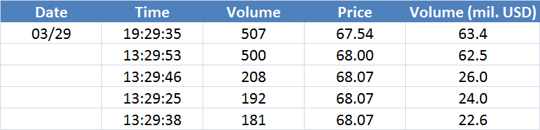 Největší obchody podle objemu na Brent (aktivní future kontrakt)