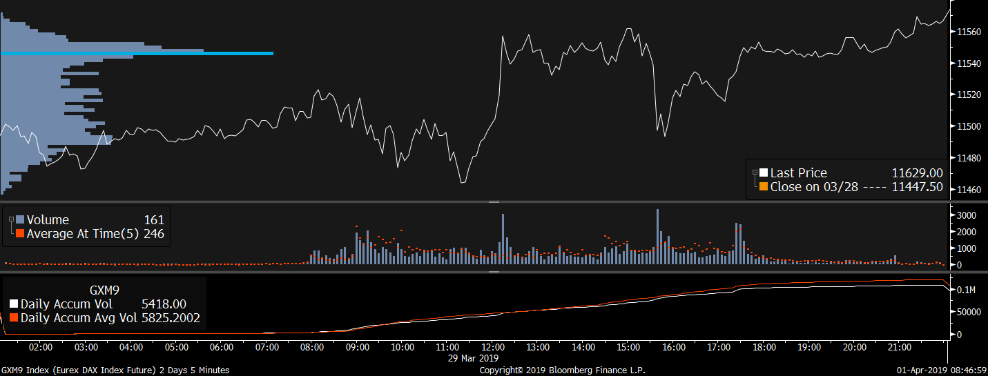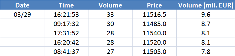 Největší obchody podle objemu na DAX (aktivní future kontrakt)