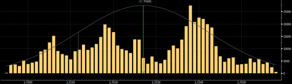 - nejvíce obchodů zrealizováno na ceně 1.3138