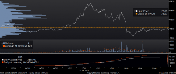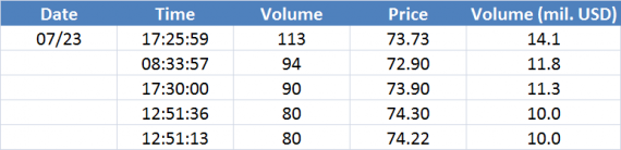 Největší obchody podle objemu na Brent (aktivní future kontrakt)