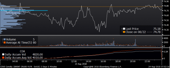 Největší obchody podle objemu na Brent (aktivní future kontrakt)
