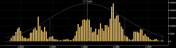 - nejvíce obchodů zrealizováno na ceně 1.2878
