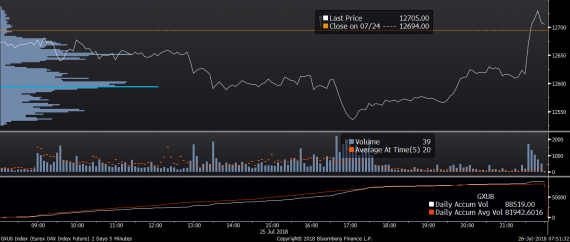Největší obchody podle objemu na DAX (aktivní future kontrakt)