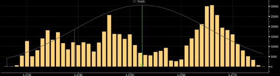 Celkový počet obchodů na jednotlivých cenách během minulé obchodní seance. Úrovně, na kterých se minulou obchodní seanci daný měnový pár nejčastěji zdržoval, mohou působit jako účinný magnet také dnes.