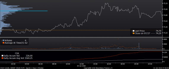 Největší obchody podle objemu na Brent (aktivní future kontrakt)
