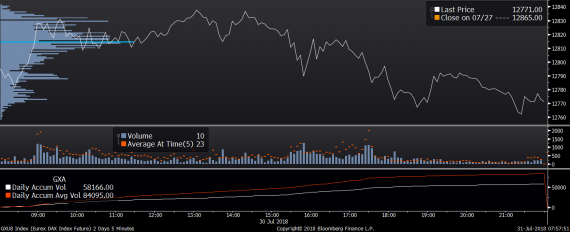 Největší obchody podle objemu na DAX (aktivní future kontrakt)