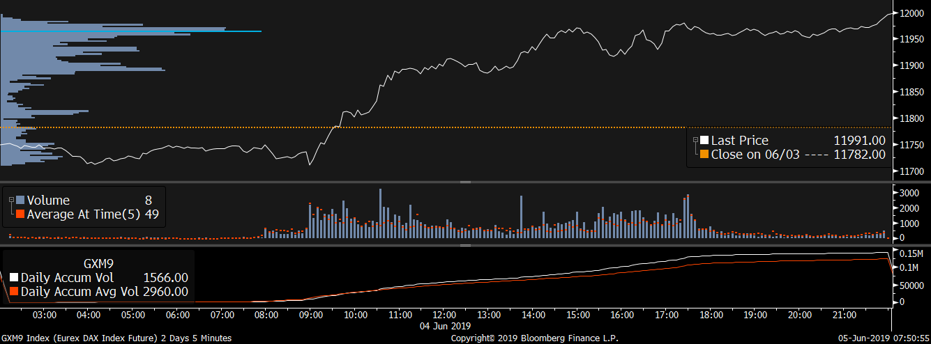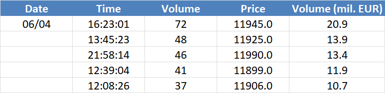 Největší obchody podle objemu na DAX (aktivní future kontrakt)