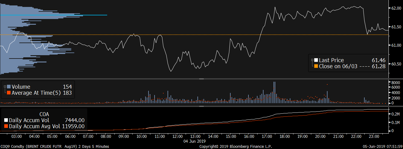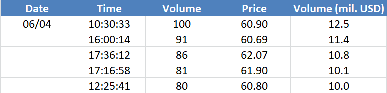Největší obchody podle objemu na Brent (aktivní future kontrakt)
