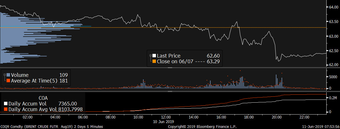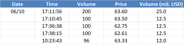 Největší obchody podle objemu na Brent (aktivní future kontrakt)