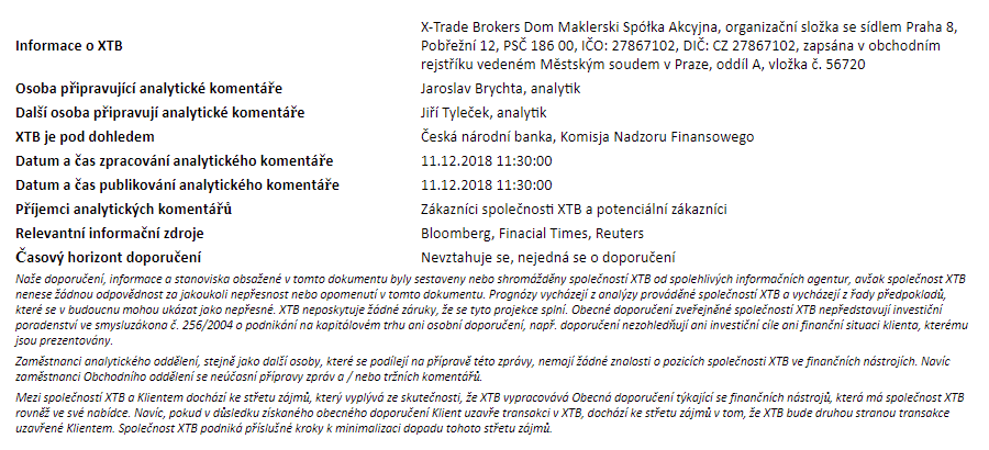 Tento materiál je marketingovou komunikáciou v zmysle čl. 24 ods. 3 smernice Európskeho parlamentu a Rady 2014/65/EÚ z 15. mája 2014 o trhoch s finančnými nástrojmi, ktorou sa mení smernica 2002/92/ES a smernica 2011/61/EÚ (MiFID II). Marketingová komunikácia nie je investičným odporúčaním ani informáciou odporúčajúcou alebo navrhujúcou investičnú stratégiu v zmysle nariadenia Európskeho parlamentu a Rady (EÚ) č. 596/2014 zo 16. apríla 2014 o zneužívaní trhu (nariadenie o zneužívaní trhu) a o zrušení smernice Európskeho parlamentu a Rady 2003/6/ES a smerníc Komisie 2003/124/ES, 2003/125/ES a 2004/72/ES a delegovaného nariadenia Komisie (EÚ) 2016/958 z 9. marca 2016, ktorým sa dopĺňa nariadenie Európskeho parlamentu a Rady (EÚ) č. 596/2014, pokiaľ ide o regulačné technické predpisy upravujúce technické opatrenia na objektívnu prezentáciu investičných odporúčaní alebo iných informácií, ktorými sa odporúča alebo navrhuje investičná stratégia, a na zverejňovanie osobitných záujmov alebo uvádzanie konfliktov záujmov v zmysle zákona č. 566/2001 Z. z. o cenných papieroch a investičných službách. Marketingová komunikácia je pripravená s najvyššou starostlivosťou, objektivitou, prezentuje fakty známe autorovi k dátumu prípravy a neobsahuje žiadne hodnotiace prvky. Marketingová komunikácia je pripravená bez zohľadnenia potrieb klienta, jeho individuálnej finančnej situácie a nijakým spôsobom nepredstavuje investičnú stratégiu. Marketingová komunikácia nepredstavuje ponuku na predaj, ponuku, predplatné, výzvu na nákup, reklamu alebo propagáciu akýchkoľvek finančných nástrojov. XTB S.A. organizačná zložka nezodpovedá za žiadne kroky alebo opomenutia klienta, najmä za nadobudnutie alebo predaj finančných nástrojov. XTB nezodpovedá za žiadnu stratu alebo škodu, vrátane, bez obmedzenia, akejkoľvek straty, ktorá môže vzniknúť priamo alebo nepriamo, spôsobená na základe informácií obsiahnutých v tejto marketingovej komunikácii. V prípade, že marketingová komunikácia obsahuje akékoľvek informácie o akýchkoľvek výsledkoch týkajúcich sa finančných nástrojov v nej uvedených, nepredstavujú žiadnu záruku ani prognózu budúcich výsledkov. Minulá výkonnosť nemusí nevyhnutne naznačovať budúce výsledky a každá osoba konajúca na základe týchto informácií tak robí výlučne na vlastné riziko.