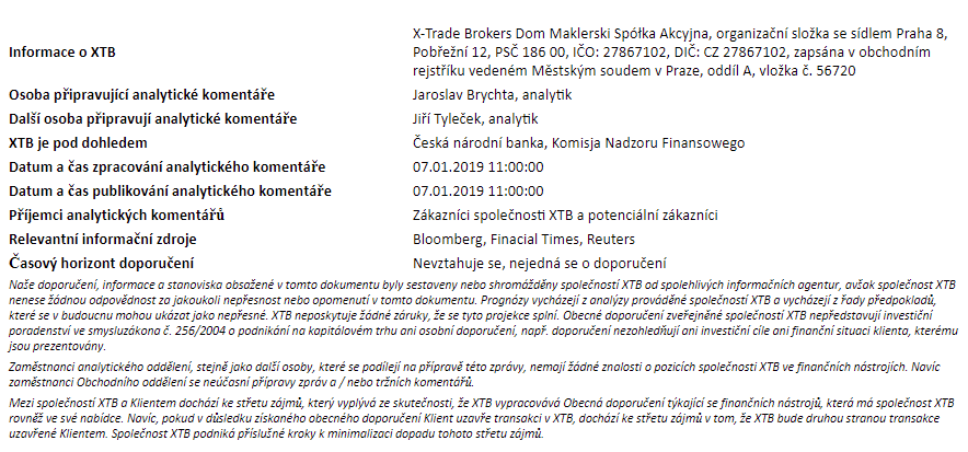 Tento materiál je marketingovou komunikáciou v zmysle čl. 24 ods. 3 smernice Európskeho parlamentu a Rady 2014/65/EÚ z 15. mája 2014 o trhoch s finančnými nástrojmi, ktorou sa mení smernica 2002/92/ES a smernica 2011/61/EÚ (MiFID II). Marketingová komunikácia nie je investičným odporúčaním ani informáciou odporúčajúcou alebo navrhujúcou investičnú stratégiu v zmysle nariadenia Európskeho parlamentu a Rady (EÚ) č. 596/2014 zo 16. apríla 2014 o zneužívaní trhu (nariadenie o zneužívaní trhu) a o zrušení smernice Európskeho parlamentu a Rady 2003/6/ES a smerníc Komisie 2003/124/ES, 2003/125/ES a 2004/72/ES a delegovaného nariadenia Komisie (EÚ) 2016/958 z 9. marca 2016, ktorým sa dopĺňa nariadenie Európskeho parlamentu a Rady (EÚ) č. 596/2014, pokiaľ ide o regulačné technické predpisy upravujúce technické opatrenia na objektívnu prezentáciu investičných odporúčaní alebo iných informácií, ktorými sa odporúča alebo navrhuje investičná stratégia, a na zverejňovanie osobitných záujmov alebo uvádzanie konfliktov záujmov v zmysle zákona č. 566/2001 Z. z. o cenných papieroch a investičných službách. Marketingová komunikácia je pripravená s najvyššou starostlivosťou, objektivitou, prezentuje fakty známe autorovi k dátumu prípravy a neobsahuje žiadne hodnotiace prvky. Marketingová komunikácia je pripravená bez zohľadnenia potrieb klienta, jeho individuálnej finančnej situácie a nijakým spôsobom nepredstavuje investičnú stratégiu. Marketingová komunikácia nepredstavuje ponuku na predaj, ponuku, predplatné, výzvu na nákup, reklamu alebo propagáciu akýchkoľvek finančných nástrojov. XTB S.A. organizačná zložka nezodpovedá za žiadne kroky alebo opomenutia klienta, najmä za nadobudnutie alebo predaj finančných nástrojov. XTB nezodpovedá za žiadnu stratu alebo škodu, vrátane, bez obmedzenia, akejkoľvek straty, ktorá môže vzniknúť priamo alebo nepriamo, spôsobená na základe informácií obsiahnutých v tejto marketingovej komunikácii. V prípade, že marketingová komunikácia obsahuje akékoľvek informácie o akýchkoľvek výsledkoch týkajúcich sa finančných nástrojov v nej uvedených, nepredstavujú žiadnu záruku ani prognózu budúcich výsledkov. Minulá výkonnosť nemusí nevyhnutne naznačovať budúce výsledky a každá osoba konajúca na základe týchto informácií tak robí výlučne na vlastné riziko.
