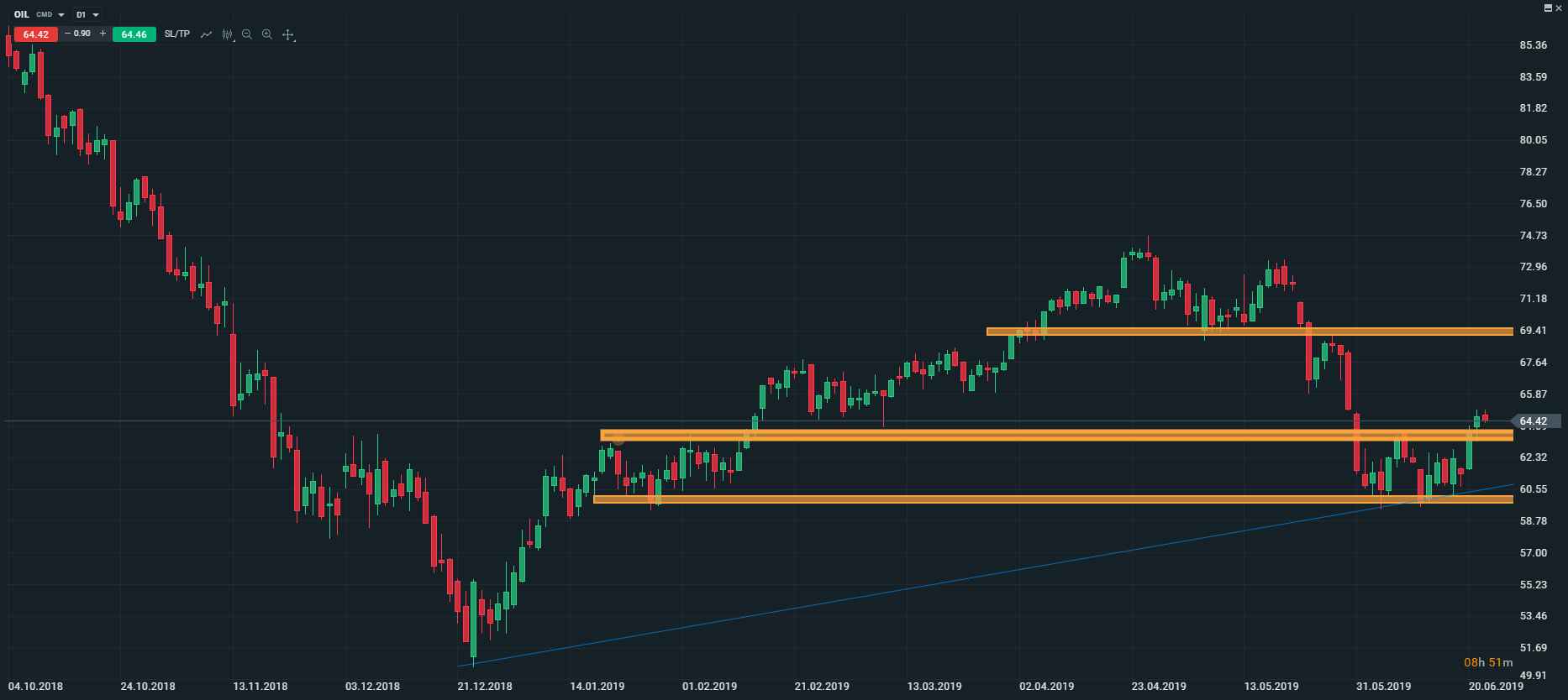 Minulý týždeň zdražela ropa Brent o viac ako 3 doláre. Za týmto zdražovaním stojí hlavne napätie medzi Iránom a USA. Pred dvoma týždňami boli zničené dva tankery v Perzskom zálive, pričom sa hovorí, že za ich zničením stojí Irán. Minulý týždeň sa napätie medzi USA a Iránom ešte prehĺbilo. Irán zostrelil americký špionážny dron pri vstupe do Perzského zálivu. Iránske média tvrdia, že dron vstúpil do iránskeho vzdušného priestoru. USA tvrdia, že dron sa pohyboval v medzinárodnom vzdušnom priestore, keď bol zostrelený iránskou raketou. Cena ropy Brent v reakcii na túto správu posilnila o viac ako 1,5 dolára.