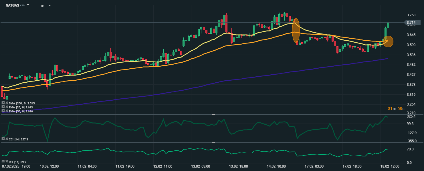 Zdá sa, že zemný plyn (NATGAS) aj napriek očakávanému otepleniu v USA pokračuje v raste a aktuálne posilňuje o 3 %. Tento pohyb naznačuje, že dopyt zostáva silný, hoci fundamentálne faktory, ako je teplejšie počasie, by mohli mať opačný efekt.