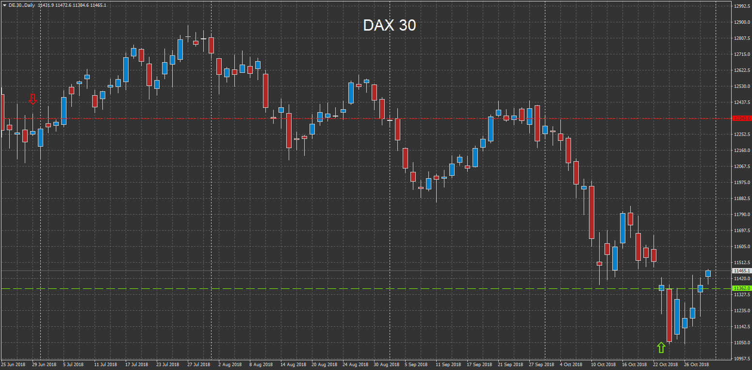 Nejlepší trader ze Slovenska také prodal německý DAX (DE30.), a to ve stejném objemu 0,5 lotu. Ve srovnání s českou pozicí se však jednalo o krátkodobý obchod. Celkový zisk dosáhl na 4286 euro. Trader vstoupil do pozice v pondělí 22. října večer, kdy hodnota indexu dosahovala na 11514,4 bodů. Ve středu 24. října pozici uzavřel na úrovni 11 171,5 bodů. Celkový pohyb ve prospěch obchodníka dosáhl na takřka 343 bodů.