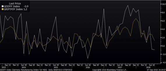 Tvrdé čísla z ekonomiky, ktoré boli zverejnené včera a dnes však až toľko optimizmu nedávajú. Sklamali tak priemyselné objednávky ako aj priemyselná výroba. Medziročná zmena priemyselných objednávok ukázala -0,9%, čo je najhoršie číslo za posledné dva roky. Priemyselná výroba zase rastie medziročné len o 1,2%, čo je druhá najnižšia úroveň od zimy 2017.