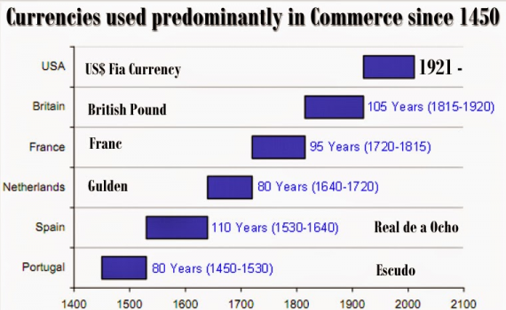 Rezervná mena je rezervnou menou preto, lebo v nej prebieha väčšina cezhraničných transakcií. V histórii táto rola takmer stále pripadala najväčšej ekonomike. V koloniálnej dobe to boli koloniálne mocnosti, v post-koloniálnej to boli USA.