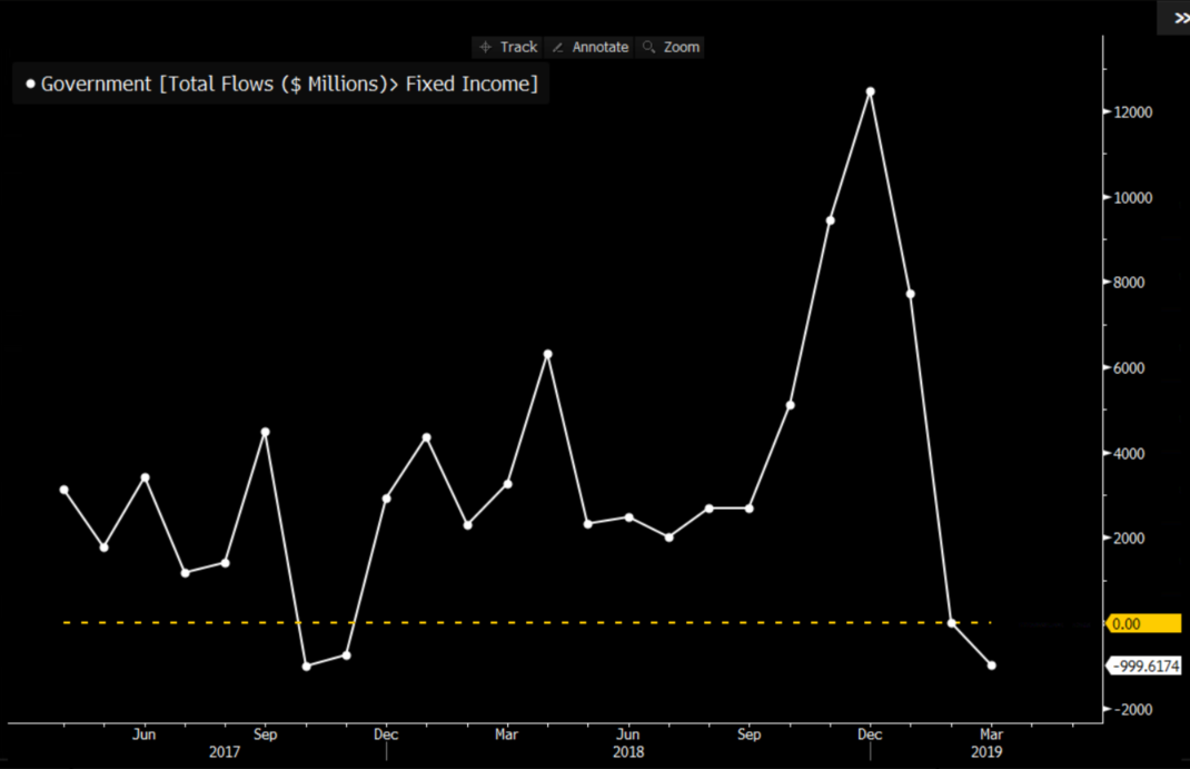 Uvoľnenie monetárnej politiky federálnym rezervným systémom poslal výnosy na US dlhopisoch nadol. V dôsledku toho sa v marci odčerpala takmer miliarda dolárov z ETF fondov zameraných na investovanie do vládnych dlhopisov.
