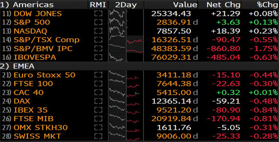 První obchodní den nového týdne zatím probíhá klidněji, než možná mnozí očekávali po nočním výplachu na liře a ranní nejistotě na rizikových aktivech. DAX se po ranním gapu uklidnil a má spíše lehkou tendenci posilovat. Americké indexy už dokonce otevřely do čených čísel. Minulý týden byl pro americké akcie první ztrátový po pěti růstových týdnech.