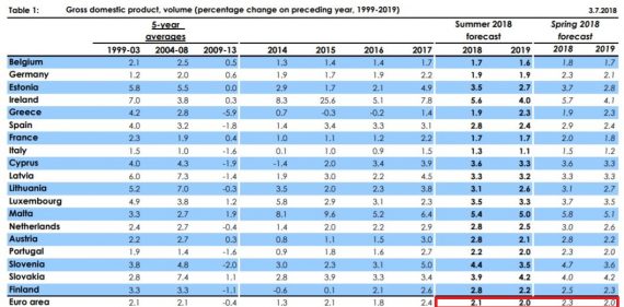Letná prognóza HDP Európskej komisie a porovnanie s jarnou prognózou