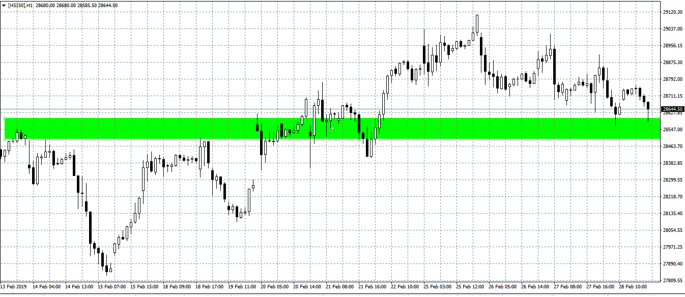 Dnes nadránom bolo zverejnené čínske PMI výrobného sektora za február ktoré nenaplnilo očakávania. PMI výrobného sektora zaznamenalo pokles oproti minulému mesiacu z 49,5 bodov na 49,2 bodov. PMI sektora služieb pokleslo oproti minulému mesiacu z 54,7 bodov na 54,3 bodov. Obavy o hospodársky rast v krajine sa prehlbujú, čo sa premietlo aj na ázijské akciové trhy, ktoré reagovali poklesom. Čínsky akciový index Hang seng zaznamenal pokles hodnoty k úrovni 28600 - 28500 bodov, kde sa nachádza úroveň podpory. V prípade ďalších negatívnych správ je možné, že cena prerazí túto úroveň podpory, čím by sa otvoril priestor na pokles k úrovni 28 000 bodov.