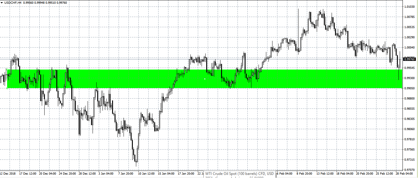 Negatívna nálada na trhoch spôsobená poklesom PMI pod úroveň 50 bodov v eurozóne, Japonsku a Číne, geopolitické napätie medzi Pakistanom a Indiou, neúspešné rokovania medzi USA a KĽDR, neistota ohľadom Brexitu, ako aj obavy o dosiahnutie obchodnej dohody medzi USA a Čínou môžu vytvoriť v nasledujúcich dňoch nárast dopytu po bezpečných prístavoch akým je švajčiarsky frank a japonský jen. Menový pár USDCHF aktuálne testuje silnú úroveň podpory v oblasti 0,995 – 0,99. V prípade, ak by cena dokázala preraziť túto úroveň podpory otvorí sa priestor na pokles k úrovni 0,98 USDCHF.