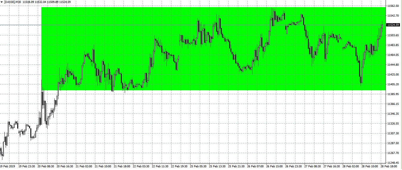 Európske akciové trhy nasledovali straty na ázijských akciových trhoch. Negatívnu náladu umocnilo aj zlyhanie rokovaní vo Vietname medzi americkým prezidentom Donaldom Trumpom a severokórejským vodcom Kim Čong-unom, ako aj nárast geopolitického napätia medzi Pakistanom a Indiou. Všetky hlavné európske akciové indexy začali obchodný deň v červených číslach. Počas dňa boli zverejnené dáta inflácie z Nemecka, Španielska, Talianska, Portgualska a Francúzska, ktoré dopadli mierne lepšie než sa očakávalo a pomohli európskym akciovým trhom vymazať podstatnú časť strát. Mierne zrýchlenie inflačného rastu bolo do istej miery ovplyvnené aj nárastom cien ropy. V súvislosti so súčasnou neistotou na trhoch majú akcie skôr obmedzený priestor na rast smerom nahor. Nemecký akciový index DAX sa obchoduje v pásme 11400 – 11560 bodov.