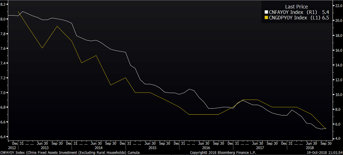 Medziročný rast čínskej ekonomiky podľa dnešných ranných dát spomalil zo 6,7% na 6,5%. (čakalo sa o niečo pomalšie spomalenie, na 6,6%). Od roku 1992, odkedy krajina spustila aspoň aké-také výkazníctvo, bol nižší len raz – v prvom kvartáli 2009, v dôsledku prepadu exportov počas krízy. Túto situáciu vtedy vyriešila vláda masívnymi stimulmi, ktoré však prudko nafúkli korporátny dlh, čo malo za následok prudký rast nerovnováh v ekonomike.