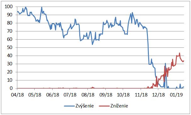Vývoj pravdepodobnosti zvýšenia a zníženia sadzieb v roku 2019