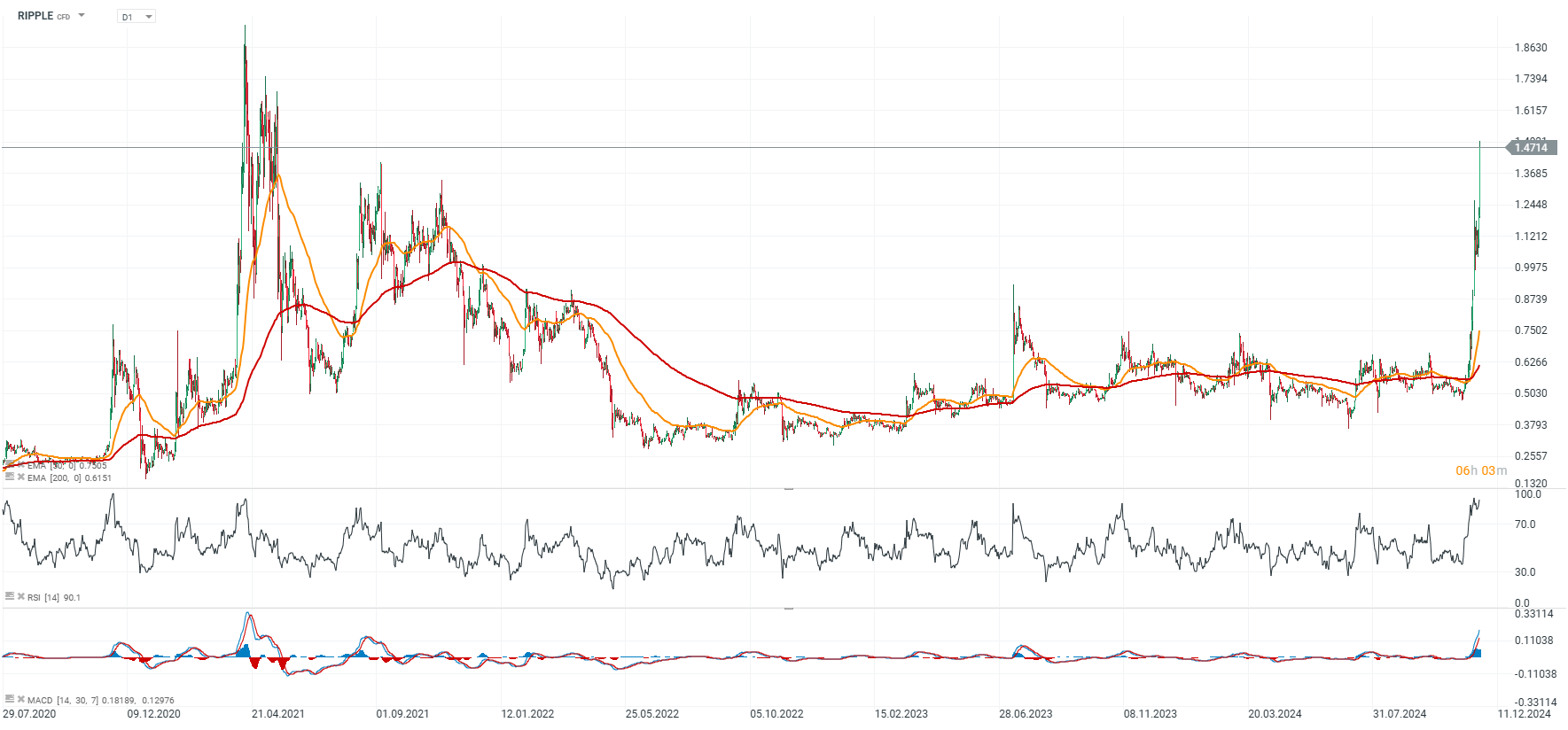 Ripple (XRP) dnes posilňuje takmer o 23 %, pretože kryptomenový trh reaguje na oznámenie Garyho Genslera o jeho plánovanom odstúpení 20. januára 2025.