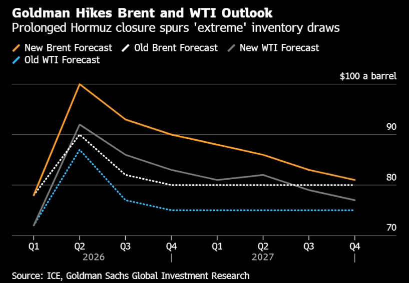 Americká banka Goldman Sachs predstavila novú prognózu vývoja cien ropy pre nadchádzajúce kvartály. Dôvodom je predovšetkým situácia okolo Hormuzského prielivu, ktorého uzavretie podľa odhadov obmedzuje globálnu ponuku ropy takmer o 15 miliónov barelov denne. Práve tento výpadok drží ceny ropy na zvýšených úrovniach, pričom Brent sa naďalej pohybuje nad hranicou 100 USD za barel.