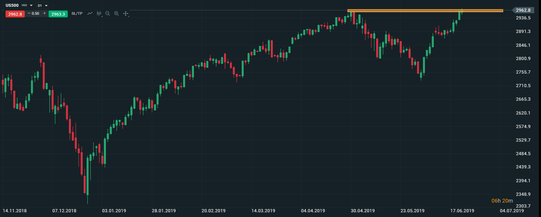Americký akciový index US500 dnes testuje nové historické maximá. V prípade, ak cena dokáže uzavrieť nad úrovňou 2965 bodov, otvorí sa priestor pre rast k úrovni 3000 bodov. Zdroj: xStation5