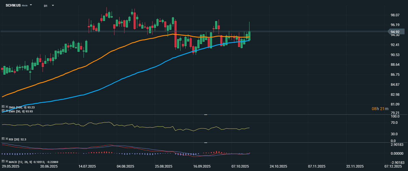 Akcie Schwabu reagovali na výsledky v premarkete rastom o 2,3 % a firma zároveň pripomenula svoj 20-miliardový program spätného odkupu akcií, v rámci ktorého v treťom kvartáli odkúpila 28,9 milióna akcií za 2,7 miliardy USD.