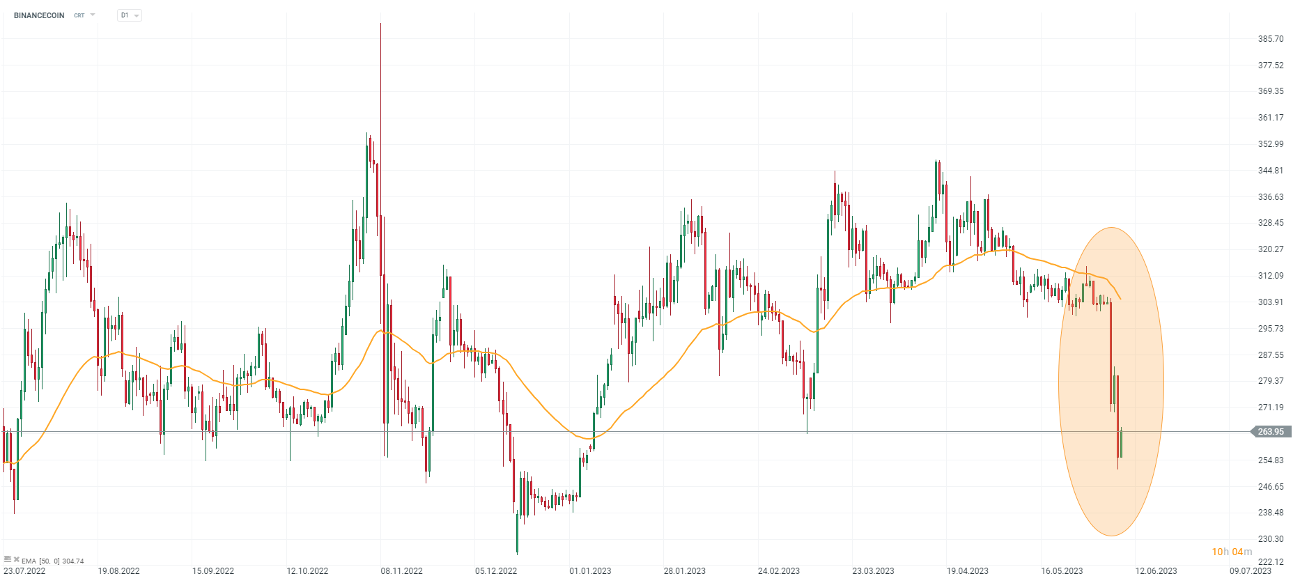 Reakcia BINANCECOIN po oznámení žaloby. Zdroj: xStation5