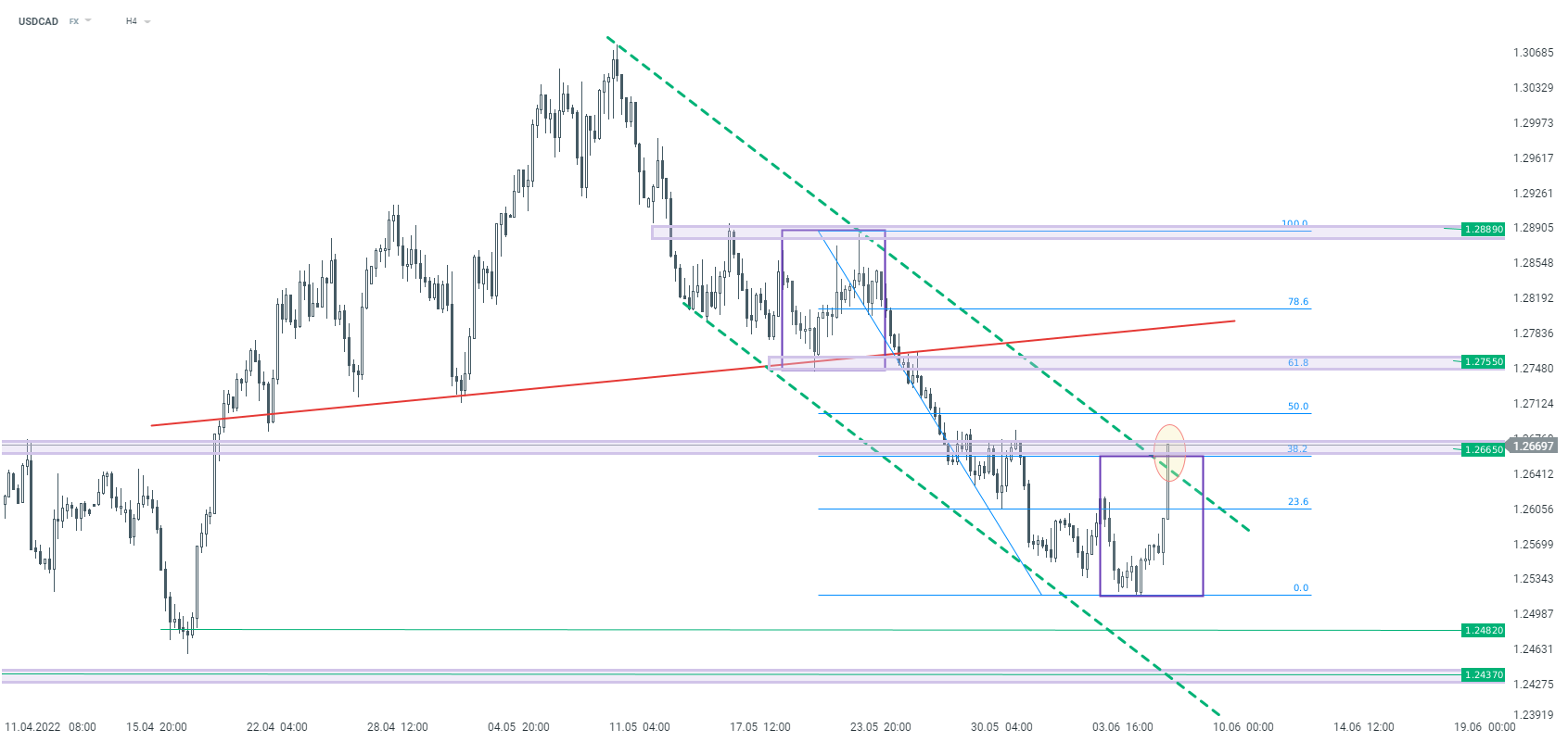 USDCAD interval H4. Zdroj: xStation5