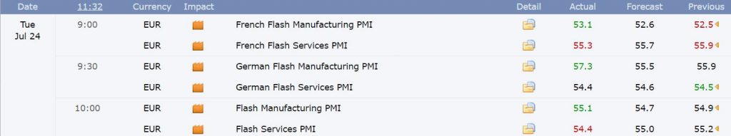 Dnešok priniesol rýchle odhady indexov dôvery v podnikovej sfére v eurozóne. Dopadlo to nasledovne: