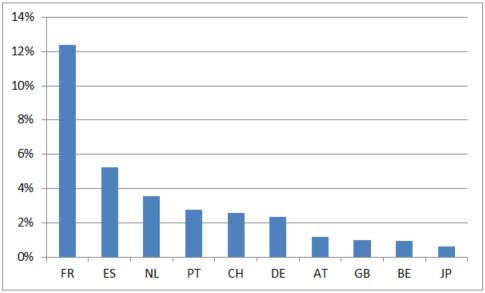 Podľa štatistík Banky pre medzinárodné platby (BIS) vedú čo sa týka expozície voči talianskemu dlhu (verejnému aj súkromnému) francúzske banky. Tie ho držali koncom druhého kvartálu v objeme zhruba 315 mld. USD. Keď si to premietneme na francúzske HDP, tak sa dostaneme nad 12%. Na druhom mieste sú v rebríčku španielske banky s expozíciou viac ako 5% HDP. Na treťom mieste je Holandsko s 3,6% a na štvrtom mieste je ďalšia zraniteľná krajina – Portugalsko s 2,8%. Čiže s odstupom najviac by si prepuknutie problémov v Taliansku odnieslo Francúzsko.